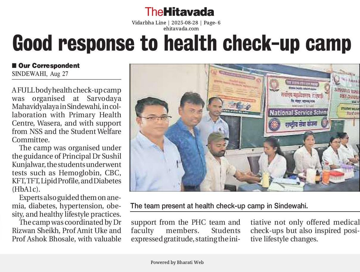 It gives me immense pleasure to welcome you to the official website of Sarvodaya Mahavidyalaya, Sindewahi. Our college, inspired by the noble vision of ‘Sarvodaya’—the development of all. we believe that education is not merely about acquiring degrees—it is about shaping character, building confidence, and preparing young minds to face the challenges of a rapidly changing world. Our dedicated faculty members strive to provide a rich academic environment while also encouraging co-curricular and extension activities for the holistic development of students.